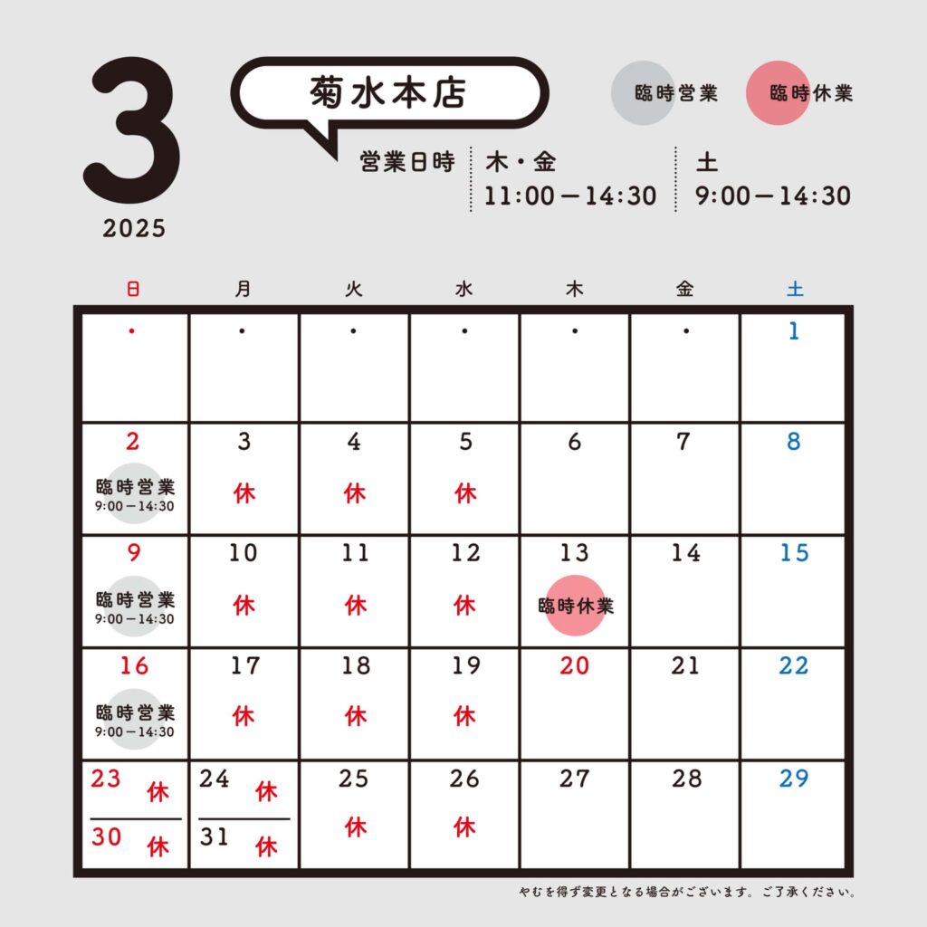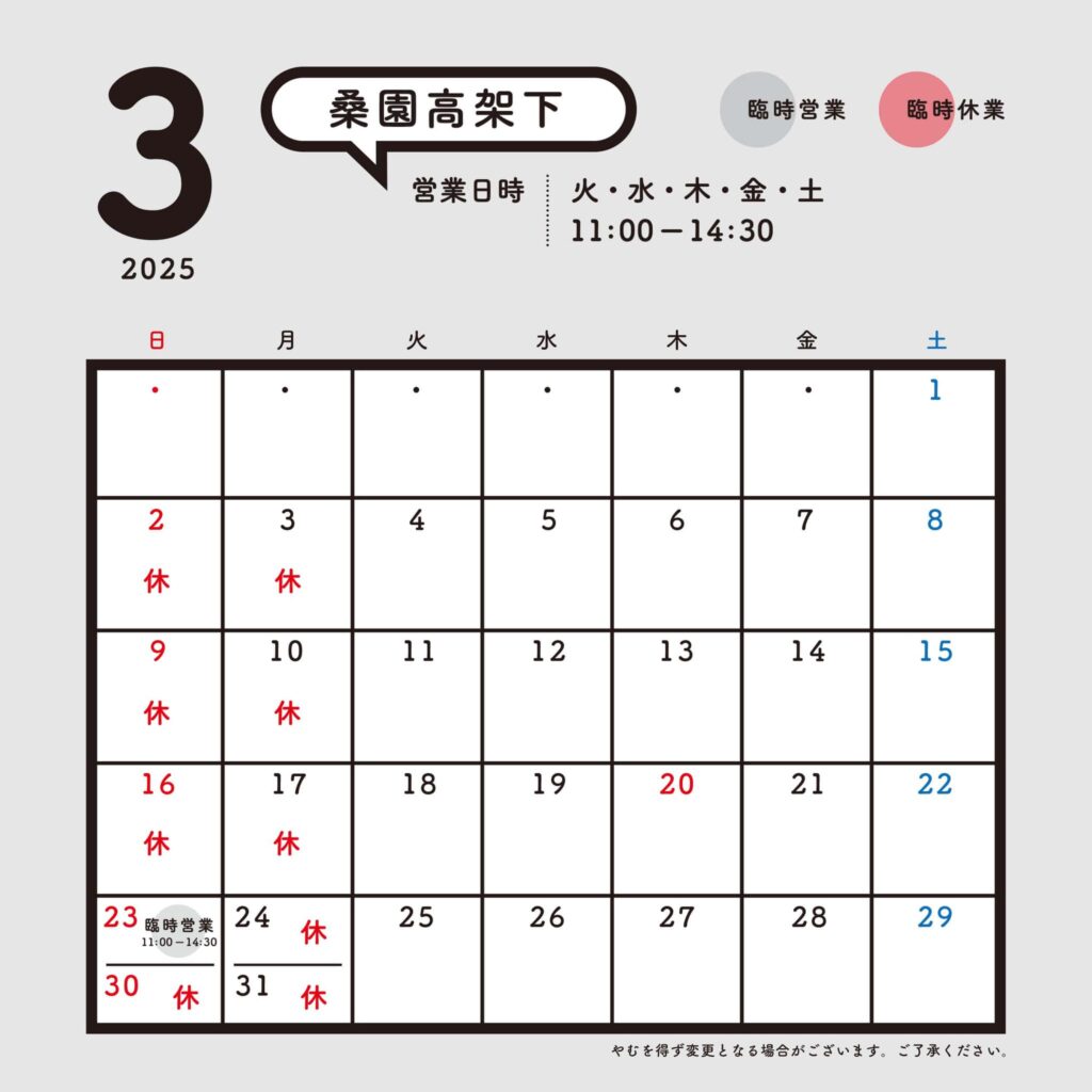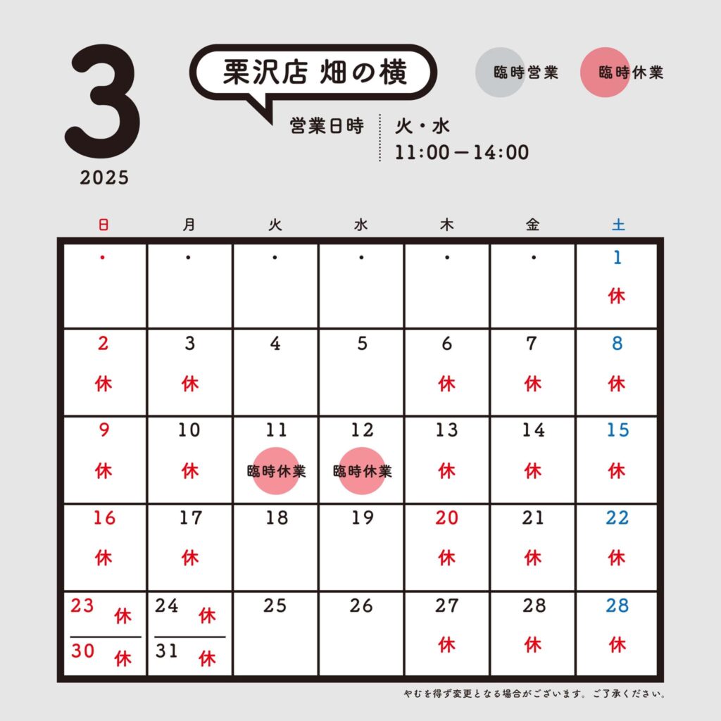 ◾️3月 営業日カレンダー◾️